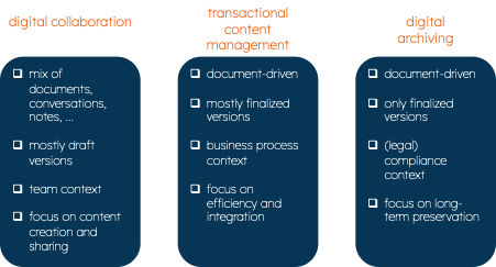 Today, that model no longer fits the digital reality. The way we create, share, and govern content has evolved, and so must the systems behind it. Many organizations are moving away from the ‘one-app-fits-all’ mindset, recognizing that, for example, short-term collaboration and long-term archiving are fundamentally different disciplines. Trying to force them into a single platform only breeds complexity, compromise, and inefficiency.