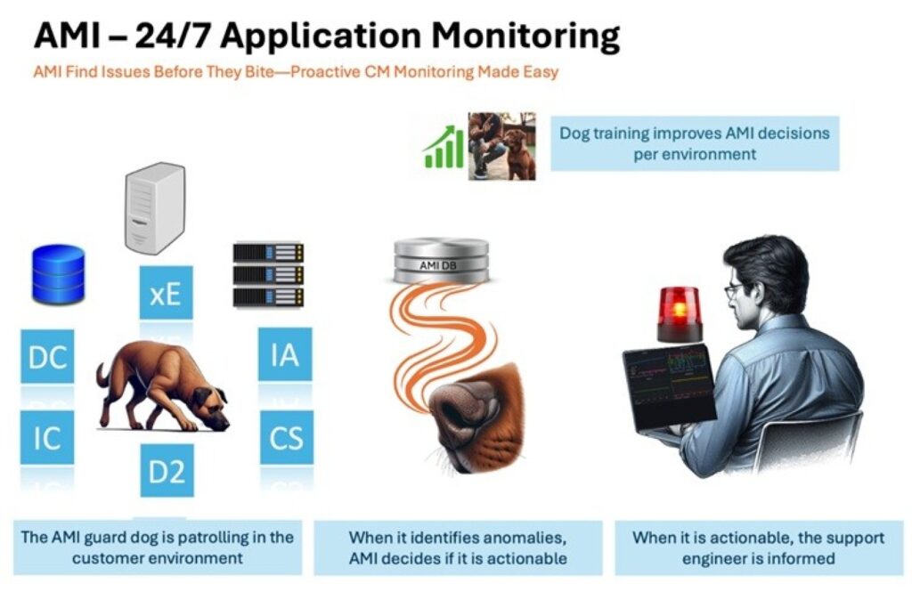Het SSC combineert diepgaande specialistische kennis met een moderne, grotendeels geautomatiseerde manier van werken. Onze monitoringoplossing AMI (AmeXio Monitoring Insights) kun je zien als een snuffelende hond op de klantomgeving: hij speurt continu rond en blaft wanneer er iets mis is, zodat onze engineers direct kunnen ingrijpen wanneer het nodig is.