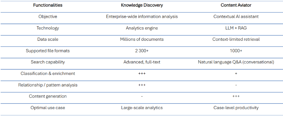 Nu we de use cases van Knowledge Discovery en Content Aviator kennen, hoe ziet zo’n vergelijking er dan precies uit?